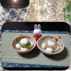 🌝🐇お月見🎑 中秋の名月 観れて良かった🤗 🌾ススキ 穂の先❀🌾❀花 ずんだ餡💚胡桃餡🤎団子🍡 もち粉・うるち米粉で 白玉団子 トッピングは 菜園の青ばた豆と無塩胡桃で餡を作りました 召し上がれ🍵
