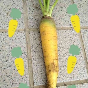 菜園だより〜✨トレタテ✨ じゃ〜ん🥕 先日のニンジンの花の傍に もうひとつ 膝丈サイズのニンジンの🌿葉が出てたので…… 引っこ抜いたら おぉ〰🤩 去年のこぼれ種かな 黄色の大きな🥕ニンジンが採れました💛 たとえ 1本だけでも 嬉しいなぁ