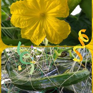 菜園だより〜🌿 囚われの🥒実 発見(-ω☆)か? 🌻きゅうり🥒の昼寝ぶら〜ん 下につかないようにハンモック状態