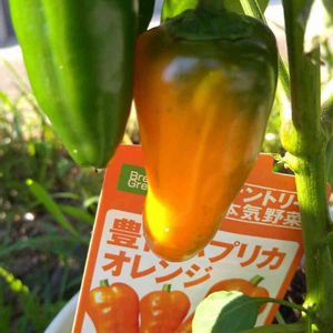 ミニミニ菜園だより〜🌿 パプリカ🫑 オレンジ色💛が いちばんに色づき始めました 赤色❤️黄色🧡は……まだまだ緑色💚