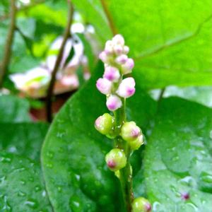 去年のこぼれ種から 出ていた🌱 ツルムラサキに 🌸花が咲き始めました🥰 って…… 菜園から 離れた花壇の隅っこ 🐦野鳥が種を運んだのかな 今年は 種蒔きしなかったので 出てきた葉🌱が何なのか…… 野菜売り場で 売っている🌱葉🌿より 大きいので ちょっと不安 もしかしてと 取らず(食べず)にありました 花が咲き 安心して 🌱葉を摘んでお浸し👩🍳食べれますね