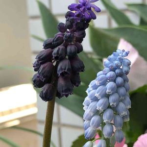 💜💙お洒落ムスカリのツーショット😍私には「細っそり姉さんとぽっちゃり妹」に見える。😊今年は色んなムスカリに会えて嬉しかった❣️