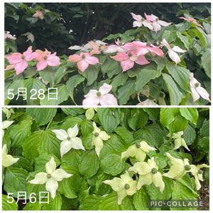 おはようございます😊 今日から早5月、よろしくお願いします🙇♀️ 🏷️木曜日は木に咲く花に参加します。 ①山法師 ②錦木 ③ご近所のムベ