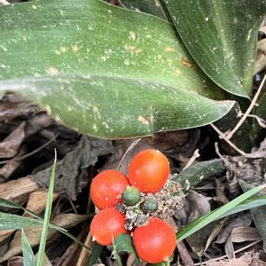 昨日のお散歩途中で👣 ご近所のおもと(万年青)❤️🧡