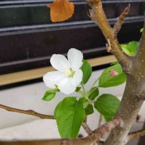 未練たらしくしわしわりんご🍎そのままにして鑑賞してますが、清楚なりんごの花🌸