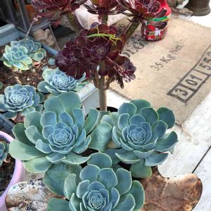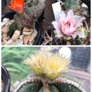 綴化三兄弟🌵 長女のラウリンゼ❤️⬆️ 二女の月影🧡↙️ そして長男の鯱くんです💚↘️ 鯱くんも半額でーす😄👍🎵 後ろのカート🛒に乗っているのは おじいちゃんの高砂の翁です 小ちゃいから恥ずかしいだって😆