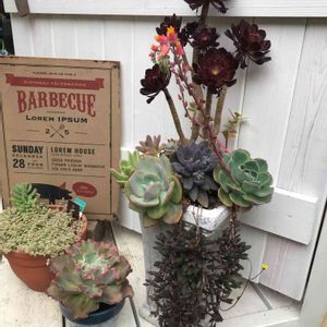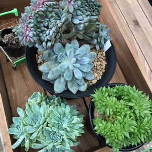 昨日の木工市でsweetbasketさんでお迎えした斑入りタイトゴメとロボレンジャー🤖 後ろに立て掛けてあるのは先日 みいこさんに頂いたセダムの豪華な松花堂弁当💖