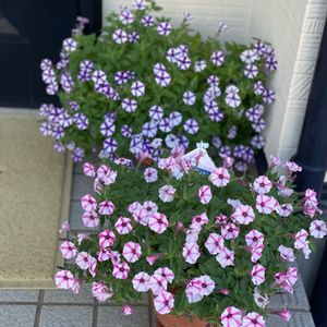 PWのお花たち本日の様子✨ 昨年息子にプレゼントしてもらったブライダルシャワー 今年自分で買ったシャンデリーニ、花が傷んでしまい、少しお花をカット✂️ 4月上旬に植え付けたスーパーチュニアとスーパーベルは、モリモリになってきました🌺 植え付け時に一度だけピンチ 梅雨前までこのままお花を楽しみます😊