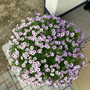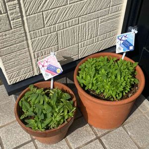 MY FAVORITE Little Garden 【コンボシリーズ】 ・PWスーパーチュニア/ビスタ パープル ・PWスーパーチュニア/ビスタ スノー ・PWスーパーベナ/ブルー タグ🏷の感じが綺麗なので購入してみました😀 一応3種開花しました😀 が、、、 暴れてタグ🏷の感じにはまだまだほど遠いので、鉢周りで戻したいと思います😀 購入から2度目😀