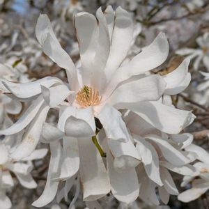 モクレン科のお花 1️⃣2️⃣3️⃣コブシ(辛夷) モクレン科 同 🎵こぶし咲くあの丘 北国の ああ北国の春〜🎶 この花を見ると口ずさんでしまう歌 北国ではなく、どちらかといえば温かい地域ですが、昔の曲は花の事を歌った歌詞が多く、季節感を感じます 早春の花です モクレンと似ていますが、モクレンの花びらは9枚(3枚は萼片) コブシは6枚 モクレンは上向きに咲き、花後に葉が付きます 開花は短いです コブシの花は、横に広がり咲きます。開花と同時に花の付け根に葉が出ます 開花期間は長いです 花の内部は上が雌蕊、下が雄蕊で、ハクモクレンと似ています 4️⃣名前の由来 別名 タウチザクラ(田打ち桜) タネマキサクラ(種まき桜) 5️⃣シデコブシ(四手辛夷) 名前の由来 花の形が神事に使う四手に似ている事 ひらひらしている感じが似ています