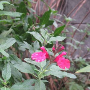 チェリーセージ?🌱 我が家で珍しい真っ赤な花 雨あがりで、鮮やか✨です