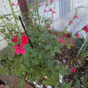 ずいぶん前に、 白が入ったセージは、 ほこったので、場所の関係で、 カットしましたが、 残った鉢植えの🪴セージは、 赤になって、咲いていました。 可愛いのは、知ってるよ🤗