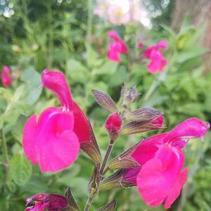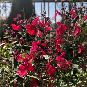 こんにちは👋😃 チェリーセージレッド シソ科耐寒性低木 草丈、60~120cm 耐寒温度―5℃程度 過湿を、嫌います。 日当たりのよい場所で、管理する。 咲き終わった花は、こまめに摘んでやると、次々に、開花します。 秋花が、咲き終わったあと、思いきって低く刈り込んでやると、翌春新しい芽がたくさん出て大株に、なります。 開花期には、月に、1度固形肥料を、与える‼️