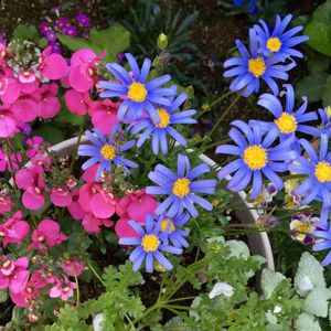 こんにちは😃 寄せ植えの中の ディアシア ダーラ ローズと ブルーデージー アズールブルー*