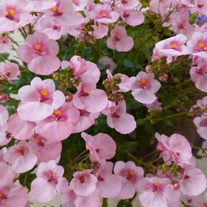 ディアシア ダーラ アップルブロッサム♪♪ 春にお迎えしてから、今が1番きれいに咲いてます(ღ˘⌣˘ღ) 何回も切り戻してやっと見事に咲いてくれました〜♡♡ あまりの華やかさにうちでは浮いた存在デス🤣