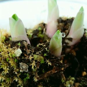 ギボウシ 擬宝珠 【マイティマウス】 芽を出し始めた マウスさんの まんまるお目々の水滴が ふたつ…。 🏷水滴の水曜日