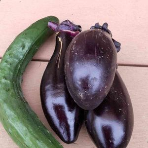こんにちは🌤 今日の収穫🍆🥒… 最初は曲がりきゅうりばかりだったけど、やっとまっすぐなのが採れ出しました😅💕