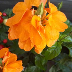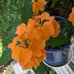 実家の玄関にあった鉢植えのオレンジ鮮やかなクロサンドラの花、暑さに強く、咲き続けるらしい✨️💖 ❇️クロサンドラ