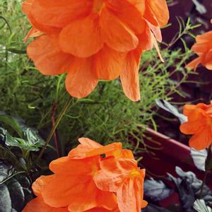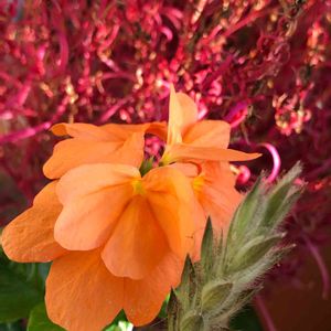 こんばんは(˶ᵔ ᴗᵔ˶) 今朝、クロサンドラが咲きました🧡 うれしいです·˖✶ コキアは、赤色に染まるまで観察したいと思います♪