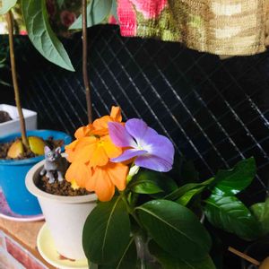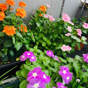 夏休み中なので時間あります。 2枚目は再登場のルリマツリ(青・白)、ローズスター、クロサンドラです🌻