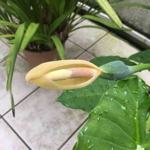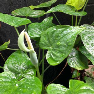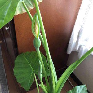 雨上がり クワズイモの花が 地味ですね 出世運が有るとか言いますがどうなんだろう