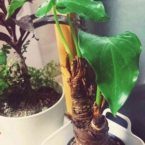🌱🌱🌱 おととい、連れて帰ってきた 中の1つ目、クワズイモさん☺︎ 茎が顔に見えるのは、私だけ?😂