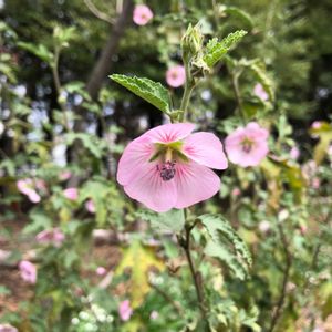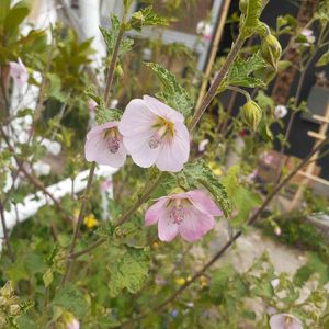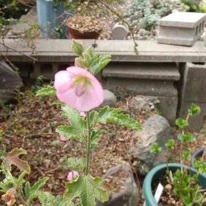 本日2枚目の投稿です 挿し木が成功してお花が咲きました お名前は姫芙蓉(ヒメフヨウ)でよいのかしら? 可愛いピンクのお花に一目惚れして枝をもらって挿し木にして大きくなりお花も咲きました やっぱりピンクのお花は可愛いですね