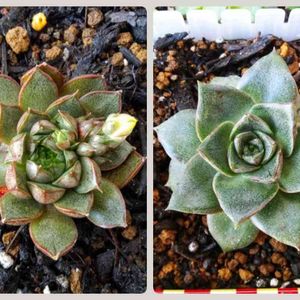 5月の投稿から約2ヶ月📆 ヤマトヒメさんに付いてるのは蕾なのか子どもなのか気になってましたが、ようやく変化が現れました✨ 蕾ですね💡 長かったー🤣 いつ花が咲くのか楽しみです🎵 そして相変わらずなヤマトニシキ君😌 でも、記録を見返すと少し大きくなって葉の数も増えてました😆
