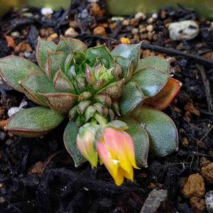 ヤマトヒメさん、やっと花が咲きました🌼 下を向いてるので中までは撮れませんでしたが、可愛い色合いです💓