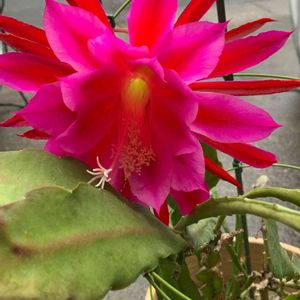 雨の中☔️今年も咲いた大きな花 🌵クジャクサボテン これは、母の放ったらかし鉢 去年のpicは、隣の鉢の白い花でした。 花が終わったら、手入れしてみよう 増やし方は、葉挿しでオーケーみたいです。 なんだ、普段と一緒 笑