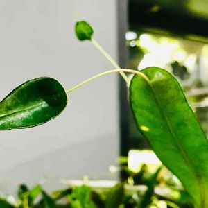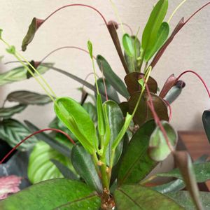 跳び葉クロトン 台風接近前 雨戸を締め切っての 夜の葉っぱパト🤭 飛び葉クロトンに 何かを発見👀 蕾です 花が咲くんですね 知りませんでした💦 5月からの住人。 葉の先から茎のようなものが出て 又葉が出ています。 ユニークだぁ🎶と一目惚れ🤭💘 踊っているように見えて いつの間にか 踊り葉クロトンと間違えて名前を覚えてしまいました💦 植え替えたら綺麗な大きな葉が出て来て 少しバランスが崩れました🤭💦 好みは可愛い踊り子さんだけど どうなるのか見守り隊です✋