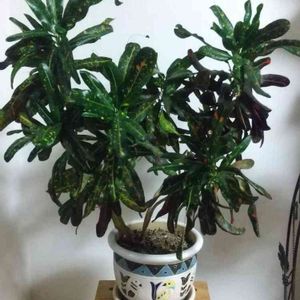 トビハクロトン🌿 庭先に少し変わった葉が、 葉先から葉が伸びている👀