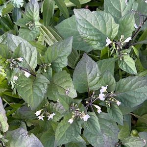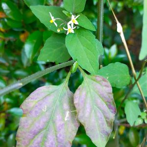 イヌホオズキ? 葉っぱが紫色に紅葉しています🟣 さすがナス科ですね!🍆 花は小さいけど凛としていて素敵(2枚目) 黒い実⚫️もなっていました(3枚目)