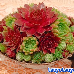 センペルビウム寄せ植え🍀 お花係の娘が学校用に初寄せ植え ちょっとてっぺん高すぎかぁ?😅 多肉植物にもっと興味持って育ててくれるようになるといいなぁ😊