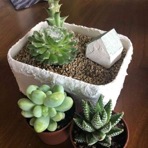 これ全部頂き物です🎵 モフモフの、名前なんだっけな…(-""-;) とにかく、珍しいやつみたい。 センペルは早速大きな鉢へ引っ越し。 右上のセダムはリメイク缶に。