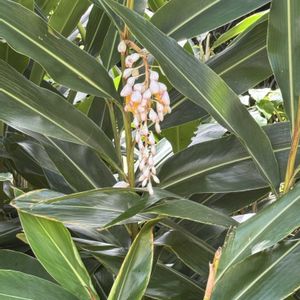 月桃の花 昨日の、散歩の途中で見た月桃の花 です。県内では至る所で目にする事 が出来ポピュラーな植物です。 白い提灯のような花はファンシーで スッキリとした爽やかな香りに何故 が吸い寄せられます。(*´-`)❣️