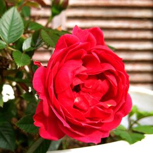 薔薇アラビア、今年も綺麗に咲きました〜🎶🌹 直径12㌢有ります、香りも素敵な薔薇です✨♥️🌹♥️🌹♥️🌹💫 🏷真っ赤な火曜日、参加させて下さい🌹