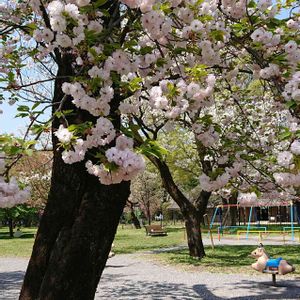小金井公園のたてもの園の前の八重桜優しい色の桜です🎶