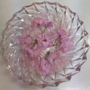 城址公園を散策していると花をビニール袋に入れて手にしている方々とすれ違いました。 落ちている八重桜を拾って帰り、まだ見たことのない花手水に憧れて水に浮かべて見ました。