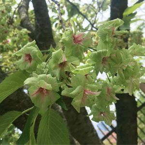 御衣黄桜 萌黄色の桜で紫陽花みたいでした✨