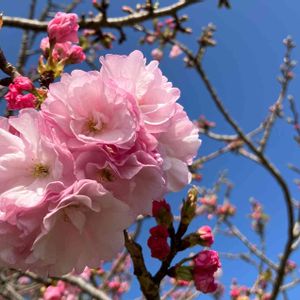 八重咲きの桜 カンザン のお花が とても綺麗に咲いていました。🌸 熊本動植物園にて 🌸花博の会場🌸 2022.4.3撮影 調べました。 花の色 ピンク 開花時期 4月 、 5月 花の特徴 ソメイヨシノ(染井吉野)が終わった後に、葉の展開と同時に花をつける。 花の色は濃い桃色で、花弁数は20~50枚くらいある。 蕾の色も濃い桃色である。 雌しべが2本あり、葉のような形になるものもある。 一総につく花の数は3、4輪である。 葉の特徴 葉は楕円形で、互い違いに生える(互生)。 葉の先は尖り、縁にはぎざぎざ(鋸歯)がある。 実の特徴 実はつかない。 この花について 枝が内側に向かって弓なりに曲がる性質がある。 その他 読み方は「セキヤマ」とする場合もある。 「里桜」の仲間の1つである。 「里桜」は主にオオシマザクラ(大島桜)を母種とする園芸品種の総称である。 平安時代から人為的な交配や野生のものから選抜育種などが行われ、200以上の種類がある。 ロンドンなどでも街路樹としてよく植えられているという。 花を塩漬けにして「桜湯」とする。 属名の Prunus は「plum(スモモ)」を意味する。 種小名の lannesiana は「園芸家ラネスの」という意味である。 生育地 公園樹、街路樹 植物のタイプ 樹木 大きさ・高さ 5~10メートル 分布 園芸品種 明治時代のはじめに巣鴨の植木屋が荒川堤に植えたのが始まり 名前の読み かんざん 分類 バラ科 サクラ属 学名 Prunus lannesiana Sekiyama うっとりする美しさ✨✨🌸 花びらいっぱい ふわふわ たまりません💕 塩漬けで食べちゃう❣️ 桜湯だったら 飲んじゃうかな❓ 今日も素敵な一日をお過ごし下さいね🥰