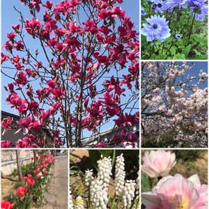 花散歩 明るめのシモクレン 白いムスカリと八重のチューリップ🌷可愛いです💕いいねくださった皆さんすいません🙏同じpicを二枚投稿しました一枚削除します