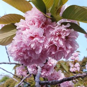箕面山まで歩いて 桜並木の八重桜のブーケ満開ですね💕