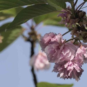 里桜(サトザクラ) バラ科サクラ属の落葉高木。大島桜(オオシマザクラ)、霞桜(カスミザクラ)、山桜(ヤマザクラ)、大山桜(オオヤマザクラ)、江戸彼岸(エドヒガン)、寒緋桜(カンヒザクラ)などの交雑選抜を経て育成された栽培品種の総称で、一般的に八重桜(ヤエザクラ)と呼ばれている。百人一首の歌にすでに詠まれているように、栽培の歴史は古く平安時代からといわれている。ことに江戸時代には種間交配が盛んに行われ、200種を超す多彩な品種群が生まれた。八重咲きのものが多いが、一重咲き品種を含め、花の咲き方も多彩。『関山(カンザン)』『普賢象(フゲンゾウ)』『鬱金(ウコン)』『御衣黄(ギョイコウ)』などがある。花期は4~5月でサクラの中では最も花期が遅い。大阪造幣局の桜並木はヤエザクラの名所。 古くから身近な里に植えられてきたのでこの名がある。里桜に対し、山野に咲く桜を山桜(ヤマザクラ)、邸宅の桜を家桜(イエザクラ)と呼んだ。奈良の吉野、京都の嵐山をはじめ平安時代からの桜の名所に咲くのは山桜。 出典『里山の花木 ハンドブック』『樹木博士入門』『樹木の事典 600種』