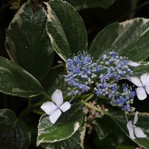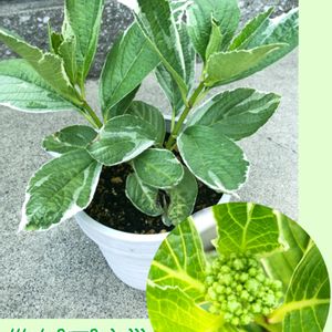 一昨年挿し木した斑入り紫陽花。 青い花が咲くと思い込んでたけど、何故か白いw