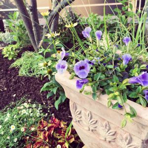 おはようございます☀ スーパートレニアカタリーナ ブルーリバー🌸 今年もお迎えしました。 昨年は寄せ植えの中で育てたので、こんもりできないまま終わり…。 今年はリベンジでこんもり目指します❣️ 今日も良い一日になりますように✨
