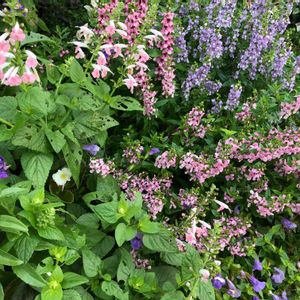アンゲロニアがあっという間にモリモリになりましたよ♡ 7/30のpicと同じ場所を反対側から撮影🌿 アンゲロニア セレニータ(mixカラー) サルビア サクラプルコ サルビア(ブルーは名称不明) スーパートレニア