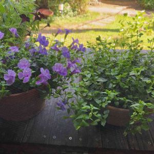 網戸越しなので紗がかかっています^ ^ 何を撮りたかったかというと、同じ日に植えたのに、右はすでに花が一つもなくなって次期のツボミいっぱい。 左はまだまだモリモリ。 何が違うのかなあ? どっちがいいのかはこれからも観察続けないとわからない。 土は右が古い土。