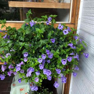 葉っぱ🌱だけだった鉢がボチボチ咲いてきてます💠 しかしボーボーだねえ💂♀️