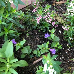 隅っこ花壇の空きスペースに挿し穂をしておいたら、可愛く💕花が咲いていました。 挿し穂、ペチュニアノアール(黒)のつもりだったのに、出てきたらトレニア💠ちゃんでしたね。 どっかで取り違えました😆 7月20日に挿し芽を作ったものです。挿し芽から25日たった姿です。🌱